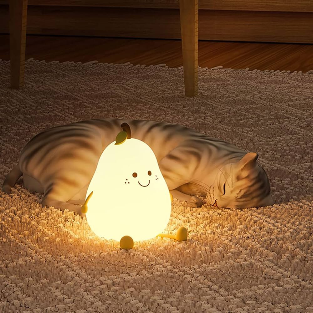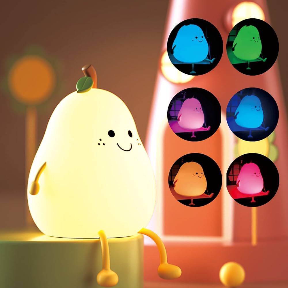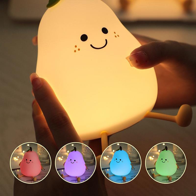Lovely pear shaped silica gel night lamp: Lovely pear shaped silica gel night lamp is made of food-grade silica gel material, no bisphenol a, soft and non-toxic, soft light, protect eyes. Two-in-one decorative night light, lovely shape, fresh color. It is not only a night light, but also a creative decoration